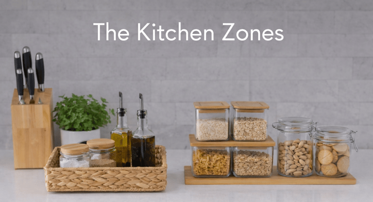 That’s when I stumbled onto kitchen zones, not as some rigid organizing trend, but as a way to make my kitchen support the way I naturally move through it.